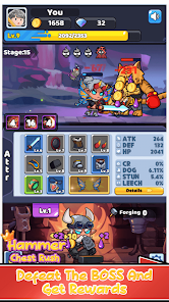 Hammer: Chest Rush is een strategisch spel voor Android waarin spelers de rol van een bekwame smid op zich nemen. Deze game biedt een meeslepende ervaring waarin je door uitdagende niveaus reist, gevaarlijke vijanden verslaat en zeldzame hulpbronnen verzamelt. De verzamelde materialen kunnen worden gebruikt om steeds krachtigere wapens en harnassen te vervaardigen, wat essentieel is om grotere uitdagingen aan te kunnen gaan.